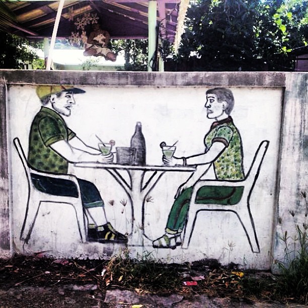 I love this stuff. Piece on the the side of a little restaurant in bequai. Simple effective messaging. #urban #unique #urbanart #street #painting #outsiders #outsiderart #art #streetlife #nuart #newart